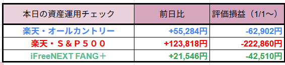 資産全体では年初から140万円以上の評価損益が悪化しています。