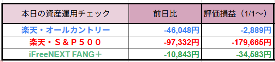 ★★「米国のハイテク株の暴落の影響が広がっています。ビットコインも下がったまままので、かなりの含み損になってきました(泣)オルカンもとうとうマイナスです😨👀」★★
